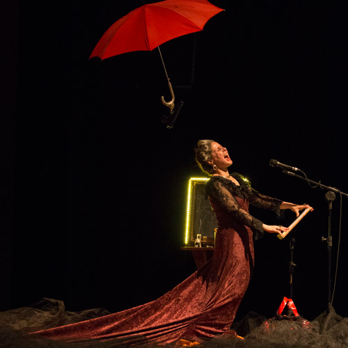 Na peça estrelada pela atriz diretora e dramaturga Rita Clemente, a artista mosta o caráter intermidiático de seu trabalho, aprofundando o diálogo entre teatro e música nessa parceria com Márcio Monteiro.